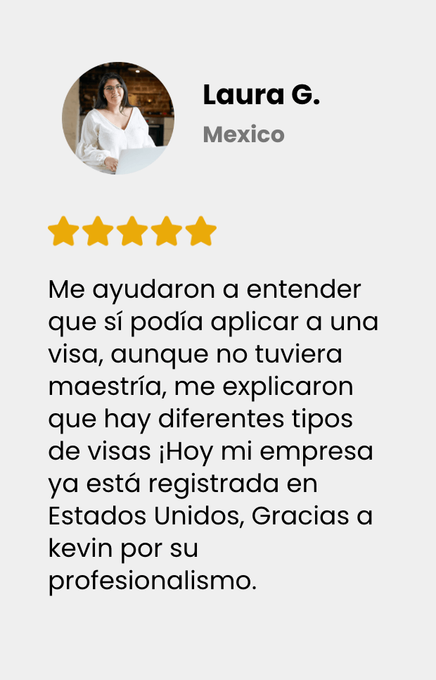 Acompañarte paso a paso en tu proceso migratorio y empresarial hacia los Estados Unidos, brindándote información clara, estrategias efectivas y un acompañamiento cercano para que tomes decisiones seguras y logres tus metas legales, personales y profesionales.